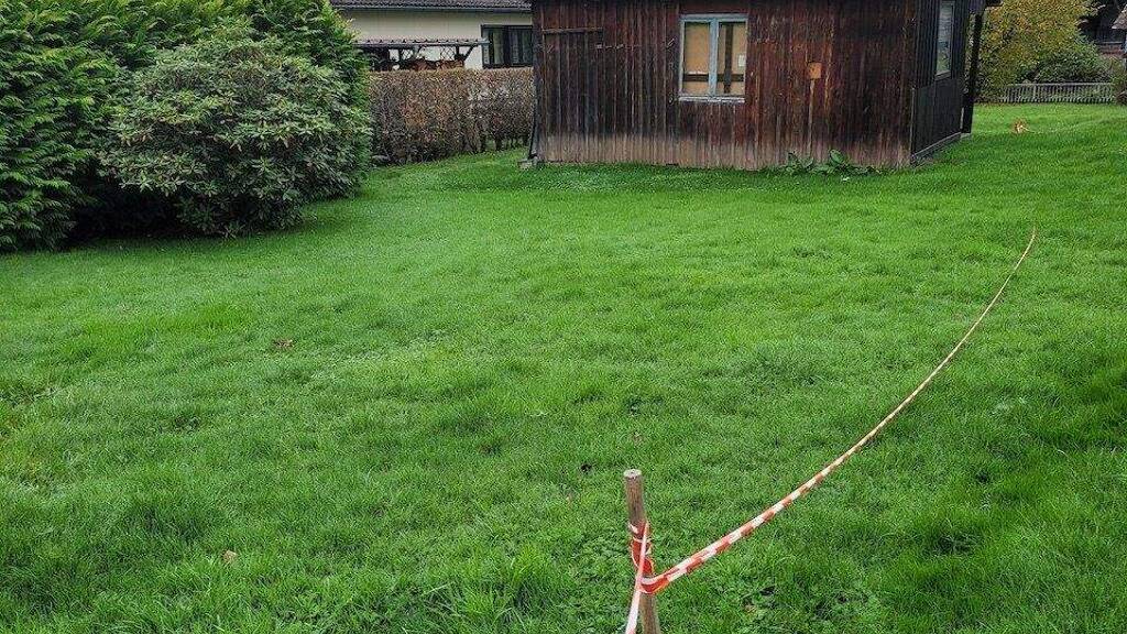 Auf dem Baugrundstück befindet sich noch ein Gartenhaus aus Holz.