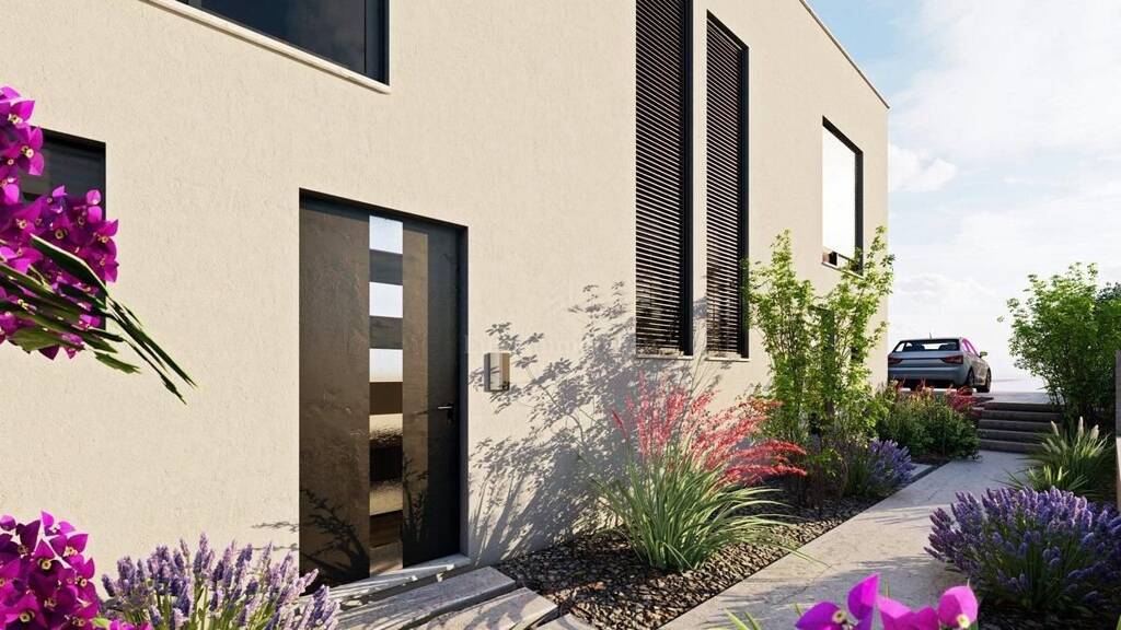Beim Bau werden hochwertige Materialien verwendet. Große Glaswände im Wohnzimmer, die sich zum Garten und zur Terrasse hin öffnen, sorgen für eine besondere Atmosphäre.