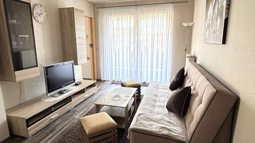 Über eine elegante Glasschiebetür gelangen Sie anschließend in das helle Wohnzimmer mit Zugang zur Terrasse. Vom Wohnzimmer aus erreichen Sie sowohl die Küche als auch das Schlafzimmer. Ein besonderes Highlight der Wohnung ist die großzügige Terrasse. Diese ist teilweise überdacht und zusätzlich mit einer Markise ausgestattet. Durch die Ostausrichtung genießen Sie hier bereits am Morgen die Sonne – ideal für ein entspanntes Frühstück im Freien.