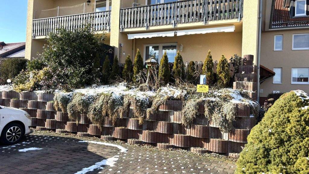 Zur Wohnung gehört außerdem ein eigener KFZ-Stellplatz direkt vor dem Haus. Dieser befindet sich nur wenige Meter von der Terrasse entfernt, sodass Sie Ihr Fahrzeug jederzeit bequem im Blick haben. Ergänzt wird das Angebot durch einen geräumigen Kellerraum.