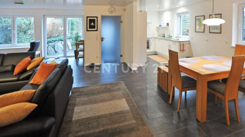 Zum Verkauf steht eine modernisierte Eigentumswohnung, die Ihnen den idealen Wohnkomfort bietet. Das Haus wurde 1991 erbaut und umfasst insgesamt sieben Wohneinheiten und eine Physiotherapie-Praxis. Im Jahr 2013 wurde die Souterrainwohnung zu Wohnzecken umgebaut. Die Wohnung hat drei Zimmer, die sich auf einer Wohnfläche von ca. 127 m² erstrecken. Beim Betreten der Immobilie gelangen Sie durch die Korridortür in den offenen und großzügigen Wohn-/Essbereich mit angrenzender Küche. Zudem befinden sich ein Schlafzimmer mit Bad en Suite, ein Arbeitszimmer, ein Gäste-WC sowie zwei Abstellräume in der Wohnung. Das geräumige Bad en Suite ist mit einer Dusche und einer Badewanne ausgestattet. Die Eigentumswohnung besticht durch ihre freundliche Atmosphäre, die vor allem durch die großzügigen Fensterflächen geschaffen wird. Außerdem gehören zwei Außenstellplätze zu der Wohnung dazu.