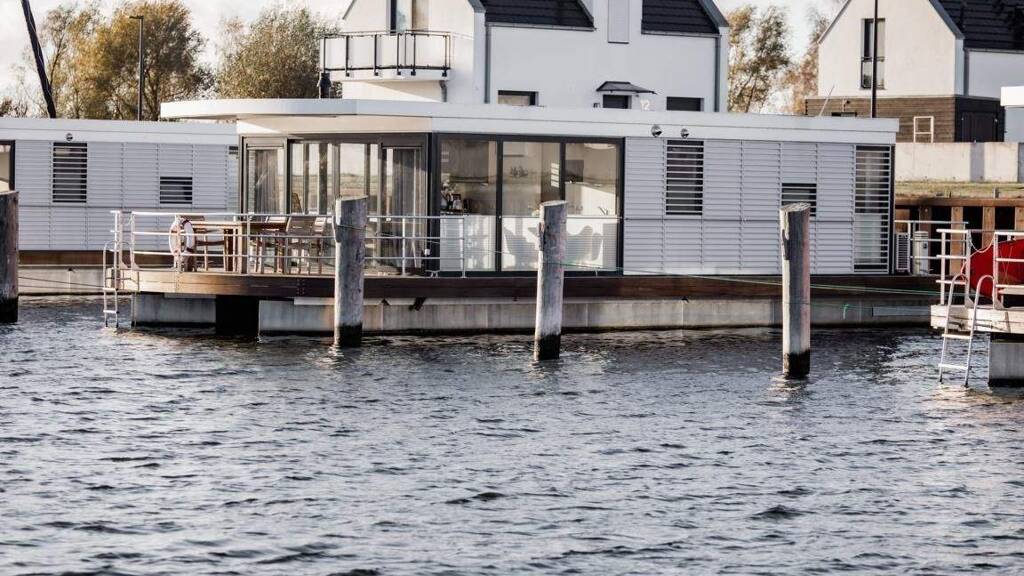 Zum Verkauf steht ein schwimmendes Ferienhaus im Yachthafen PeenemĂĽnde.