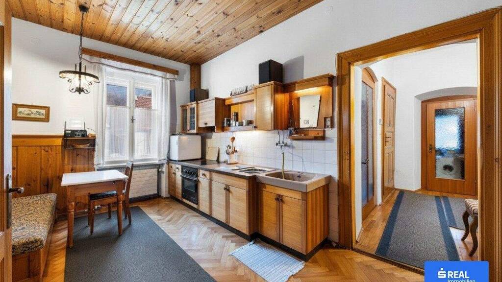 Im Inneren öffnen sich großzügige Räume mit beinahe drei Metern Raumhöhe, lichtdurchflutet und von wohltuender Klarheit. Erd- und Obergeschoss sind als eigenständige Wohnebenen angelegt, ergänzt durch eine ausgebaute Mansarde, die besonders in den Sommermonaten ihren eigenen Charme entfaltet, sowie durch Keller- und Nebenräume. Die technische Infrastruktur wurde in den späten 1990er-Jahren modernisiert, inklusive Erneuerung der Elektrik und Einbau einer Zentralheizung - zeitgemäßer Komfort, zurückhaltend integriert.