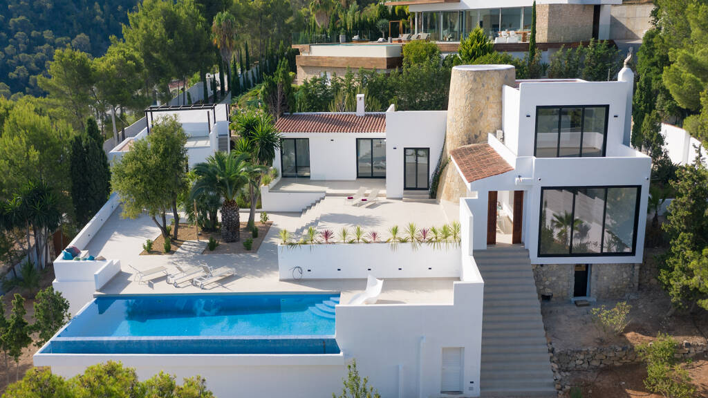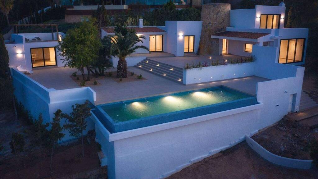 The completely renovated villa is located in Cala Moli (municipality of San Jose), in a quiet, top location, about 150 metres from the sea. It has a total of 4 bedrooms and 4 bathrooms and complies with the highest, state of the art building standards. There is also the possibility to add two further bedrooms.