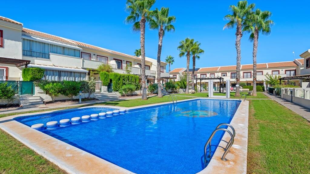 Wir präsentieren Ihnen dieses gemütliche Reihenhaus mit 2 Schlafzimmern in einer privaten Anlage in einer der begehrtesten Lagen der Costa Blanca. Perfekte Raumaufteilung für ganzjährigen Wohngenuss: Das Haus verfügt über zwei geräumige Schlafzimmer, ein Badezimmer und ein Gäste-WC sowie ein helles Wohn-Esszimmer - ideal zum Entspannen oder für gemeinsame Stunden mit der Familie. Die voll ausgestattete, separate Küche bietet Funktionalität und Privatsphäre. Zwei große Terrassen mit freiem Blick Das Haus verfügt über zwei Außenbereiche, einen an der Vorder- und einen an der Rückseite. Diese eignen sich perfekt zum Sonnenbaden, für Abendessen im Freien oder einfach zum Genießen der Aussicht auf die gepflegten Gemeinschaftsbereiche der Anlage. Geschlossene Anlage mit Pool und Gärten Die Anlage liegt in einer ruhigen und sicheren Umgebung und bietet Gartenbereiche und einen Gemeinschaftspool - ideal zum Entspannen und um das ganze Jahr über das schöne Wetter der Gegend zu genießen. Strategische und gut angebundene Lage Nur wenige Minuten von allen wichtigen Dienstleistungen entfernt: Supermärkte, Restaurants, Apotheken, Banken usw. Die Strände von Guardamar und die Stadt Torrevieja sind fußläufig erreichbar, was sie zu einer hervorragenden Wahl sowohl als Erst- als auch als Zweitwohnsitz macht. Sie ist außerdem nur 40 Minuten vom Flughafen Alicante entfernt und ganz in der Nähe des renommierten Golfplatzes La Marquesa. Eine perfekte Gelegenheit, an der Costa Blanca zu leben oder zu investieren. Kontaktieren Sie uns für weitere Informationen oder einen Besichtigungstermin.