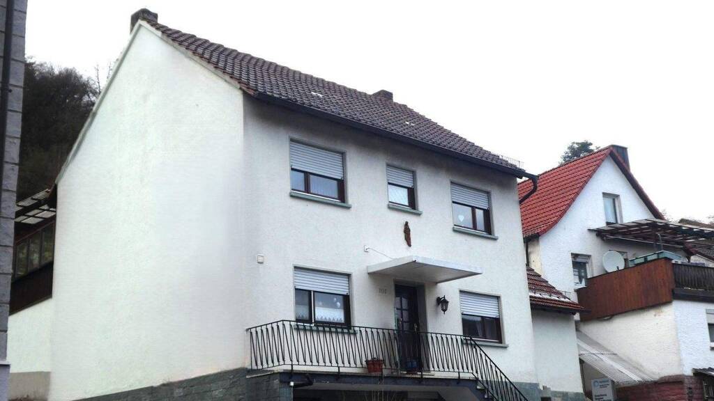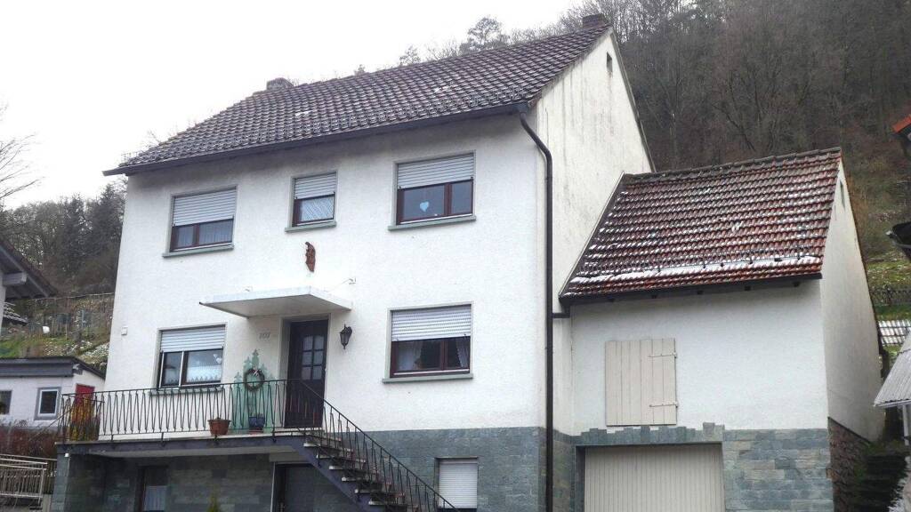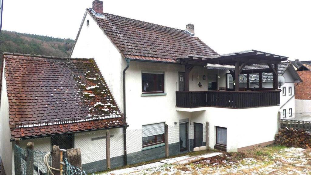 hier ist Ihr neues Familiennest... in zentraler Wohnlage liegt dieses sehr gepflegte Wohnhaus mit viel Potenzial auf einem pflegeleicht angelegten Grundstück mit einem Fernblick in den Spessart und auf der Rückseite des Anwesens sind nur Wiesen und Wald als Nachbarn. Das freistehende Wohnhaus bietet neben dem einladenden Vorgarten mit Eingangsbereich in die Wohnräume einen Eingang in den Kellerbereich in dem ein Flur, ein Kellerraum und ein weiterer Raum der auch ohne weiteres als Büro oder Gästezimmer genutzt werden kann. Der Heizraum und der Öllagerraum komplettieren das Untergeschoß. Die Vissmann Heizungsanlage wurde im Jahr 2000 erneuert und funktioniert einwandfrei.Im Erdgeschoß des Hauses gelangen Sie über einen kleinen Flurbereich in die große Küche dem sehr großen Wohnzimmer mit Essbereich und dem Tageslicht Badezimmer mit Wanne und Dusche. Im privaten Bereich, dem Obergeschoß stehen das Elternschlafzimmer und drei weitere Zimmer zur freien Verfügung und sind somit auch für die Familie mit mehreren Kindern bestens geeignet. Ein Balkon zur Straßenseite und eine überdachte Terrasse mit Zugang zum Hang-Garten auf der Rückseite lassen Sie nach Feierabend die Sonne genießen. Ein weiteres WC im Obergeschoß ergänzt die Etage. Für Ihre Waschmaschine und Trockner sind ein großer Raum mit einer weiteren Dusche im Anschluß an das Obergeschoß vorhanden. Im Dachgeschoß ist witere Ausbaureserve vorhanden, wird zur Zeit aber als Nutzfläche genutzt und ist über eine Ruck-Zuck Treppe zu erreichen. Die Fenster sind 2-fach verglaste Holzfenster und die Bäder im Haus wurden schon einmal erneuert. Eine große Einzelgarage und ein Kfz-Stellplatz vor der Garage sind für Ihre Fahrzeuge auf dem Grundstück vorhanden. Über der Garage ist ein großzügiger Scheunenraum und bietet Platz für Gartengeräte und dergleichen. Das Wohnhaus ist in einem sehr guten, altersbedingten Zustand und könnte sofort bezogen werden. Gerne zeigen wir Ihnen dieses schöne Wohnhaus bei einer Einzelbesichtigung und beraten Sie über die Möglichkeiten !