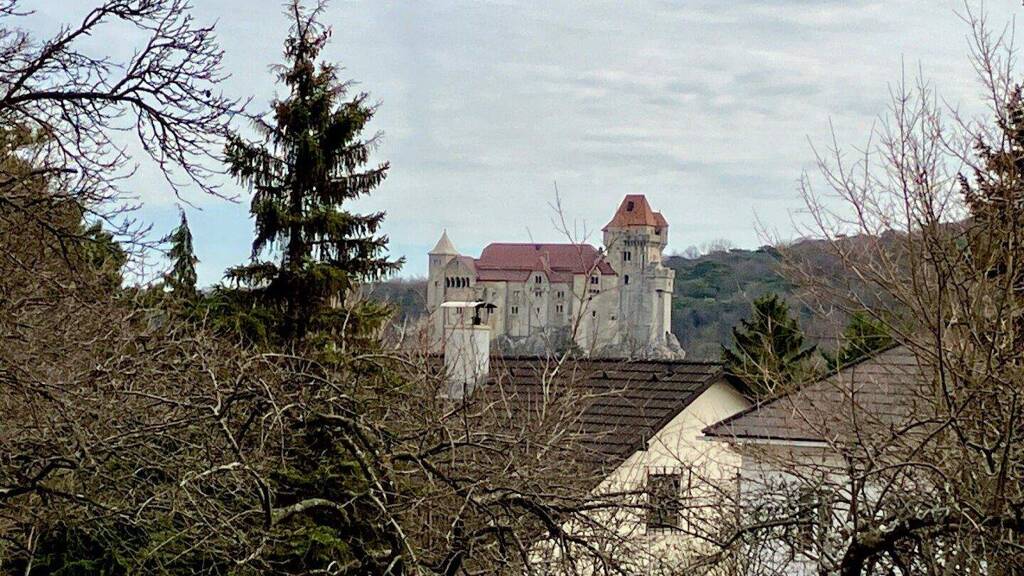 Von der Terrasse und vom Garten mit eigenem Brunnen aus hat man einen schönen, unverbaubaren Blick auf die Burg Liechtenstein.
