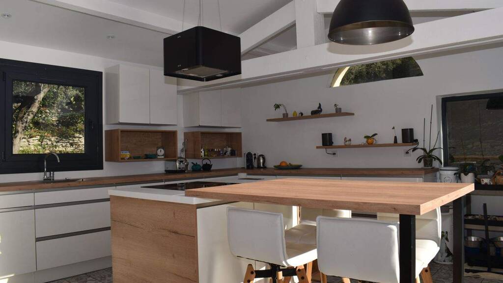Die Villa mit einer großzügigen Fläche von 210 m² verbindet Tradition und Moderne. Die ursprüngliche provenzalische Architektur harmoniert perfekt mit einem zeitgemäßen, hellen und warmen Interieur: große Öffnungen nach außen, luftige Räume und hohe Decken, die jeden Raum in Licht tauchen.