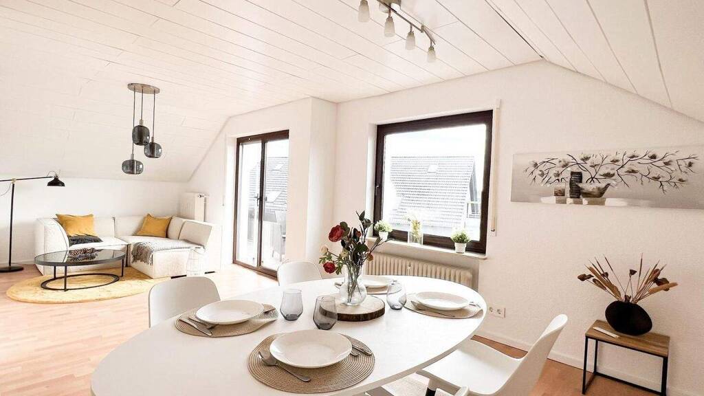 Diese traumhafte 3 Zimmer-Dachgeschoss-Wohnung erstreckt sich über großzügige 82 qm in einem gepflegten Dreiparteienhaus und besticht durch ihren lichtdurchfluteten und modernen Schnitt. Der Mittelpunkt der Wohnung ist das geräumige Wohn- und Esszimmer, welches direkten Zugang zu einem etwa 4 qm großen, sonnigen Südbalkon bietet. Dieser lädt mit seiner Südausrichtung zum Verweilen und Genießen der Sonnenstunden ein.