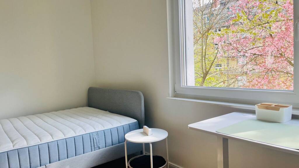 Das Zimmer ist komplett neu möbliert und bietet durch seine hochwertige Ausstattung ein Wohngefühl auf gehobenem Niveau. Es kann für eine oder zwei Personen gebucht werden und ist bereits ab 1 Monat Mietdauer verfügbar.