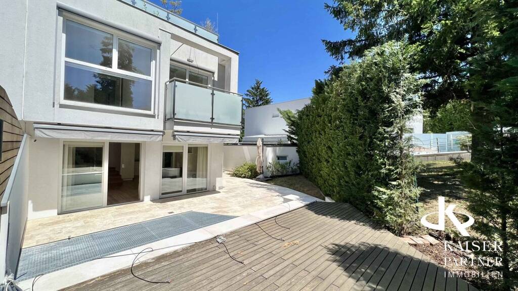 Ein weiteres Highlight dieser Immobilie sind die großzügigen Außenbereiche, die Ihnen die Möglichkeit bieten, die Sonne und frische Luft in vollen Zügen zu genießen. Die Terrasse auf der Gartenebene bietet mit dem Essplatz direkt bei der Küche, der Lounge vor dem Wohnbereich und der großzügigen Grillstation, einzeln abgegrenzte großzügige Bereiche. Auf den Balkonen und den zwei Terrassen können Sie entspannen, genießen Sie den Blick auf die grüne Umgebung und die Stadt von der 42 m² Dachterrasse.