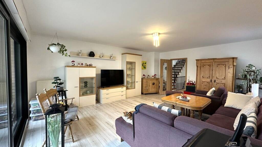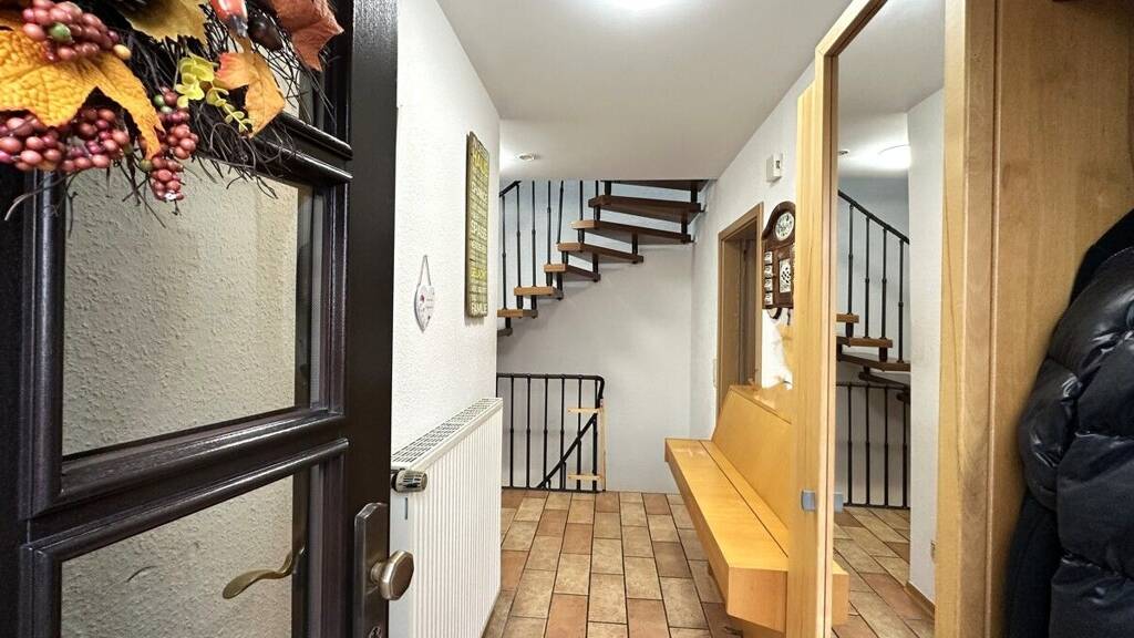 . Als Bodenbelag wurden pflegeleichte Bodenfliesen bzw. im Wohnzimmer Laminatboden verlegt, im Dachgeschoss ist Echtholzparkett verarbeitet