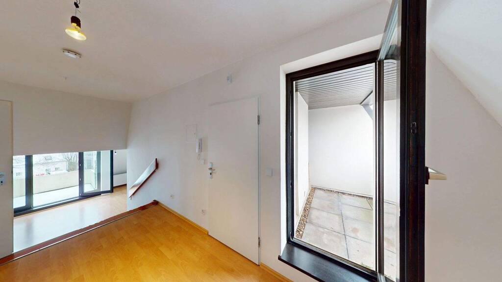 Ein besonderes Highlight sind die beiden Außenbereiche: eine gemütliche Loggia, ein Balkon mit herrlichem Blick ins Grüne, die zum Entspannen einladen und außerdem die unterschiedlichen Ebenen, die über eine großzügige Treppe verbunden sind.