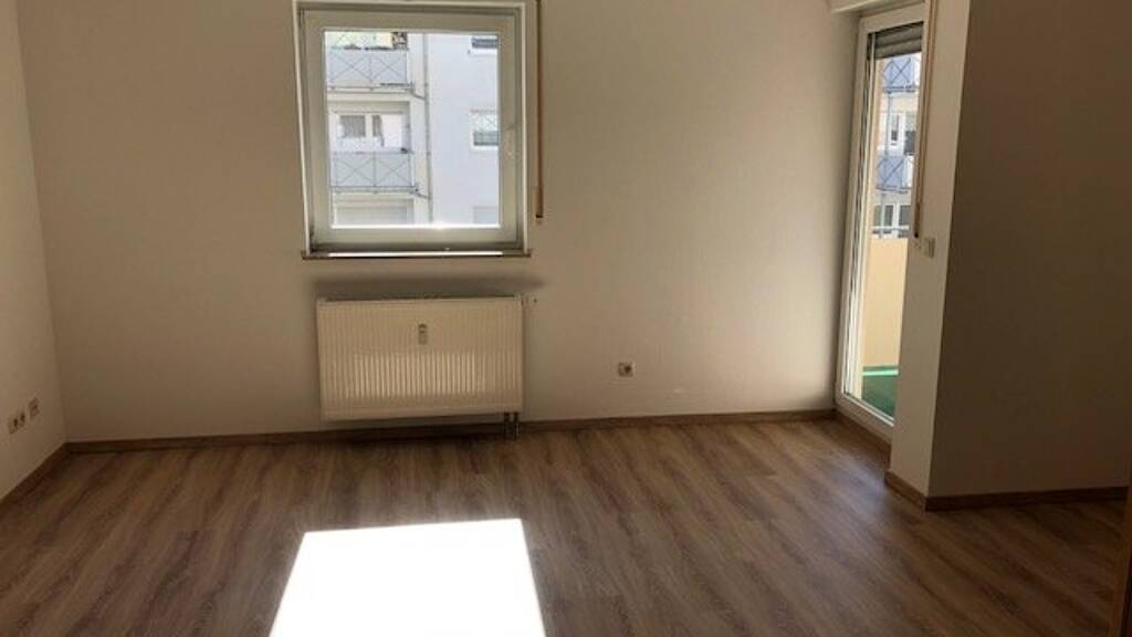 heller Wohn- und Schlafbereich mit offener Küche sowie angrenzendem Balkon, kleiner Flur mit Stellmöglichkeiten, Pantry Küche, innenliegendes Bad mit Dusche, Fußboden ist mit einem hochwertigen Laminat ausgestattet