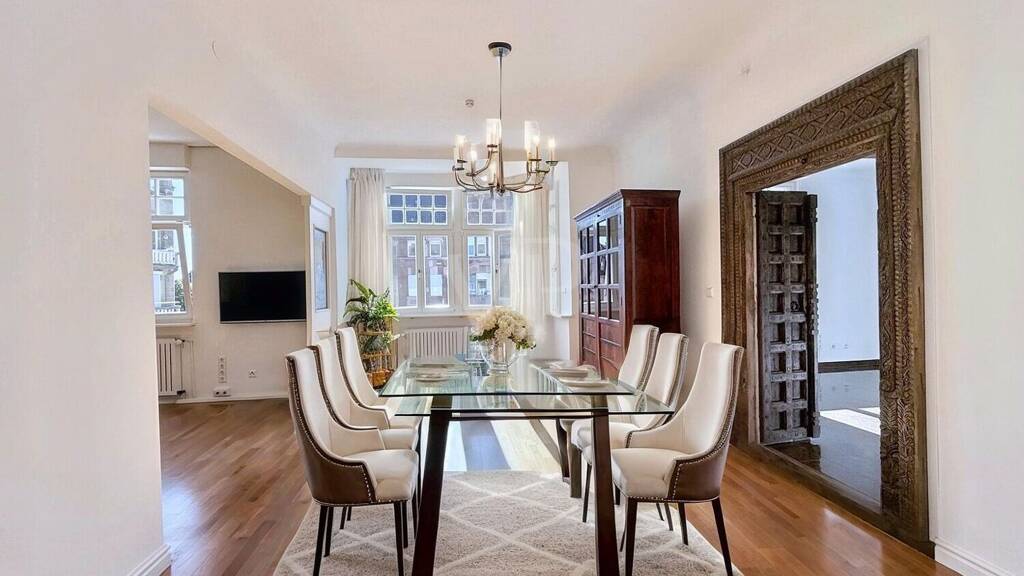 Die Wohnung befindet sich im 3. Stock eines vollständig sanierten Mehrparteienhauses, das 2023 letztmalig modernisiert wurde. Alle Sanierungs- und Modernisierungsmaßnahmen wurden mit Blick auf Qualität und eine harmonische Verbindung aus Tradition und Moderne umgesetzt. Dies spiegelt sich u. a. im Zusammenspiel von zeitlos elegantem Eichenparkett, indischem Granit, charakteristischen hohen Decken und der original indischen Tür aus der Kolonialzeit wider, die dem Objekt eine ganz besondere Note verleiht.