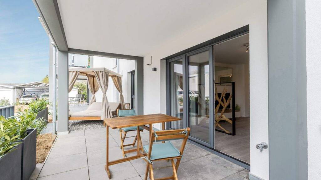 Ein Aufzug sorgt für bequemes und barrierefreies Erreichen des Apartments - von der Tiefgarage bis zum Dachgeschoss. Die Wohnung bietet Ihnen eine großzügige Terrasse sowie Gartenanteile direkt am Wasser des Ettenbachs, was eine ruhige und entspannte Atmosphäre schafft.
