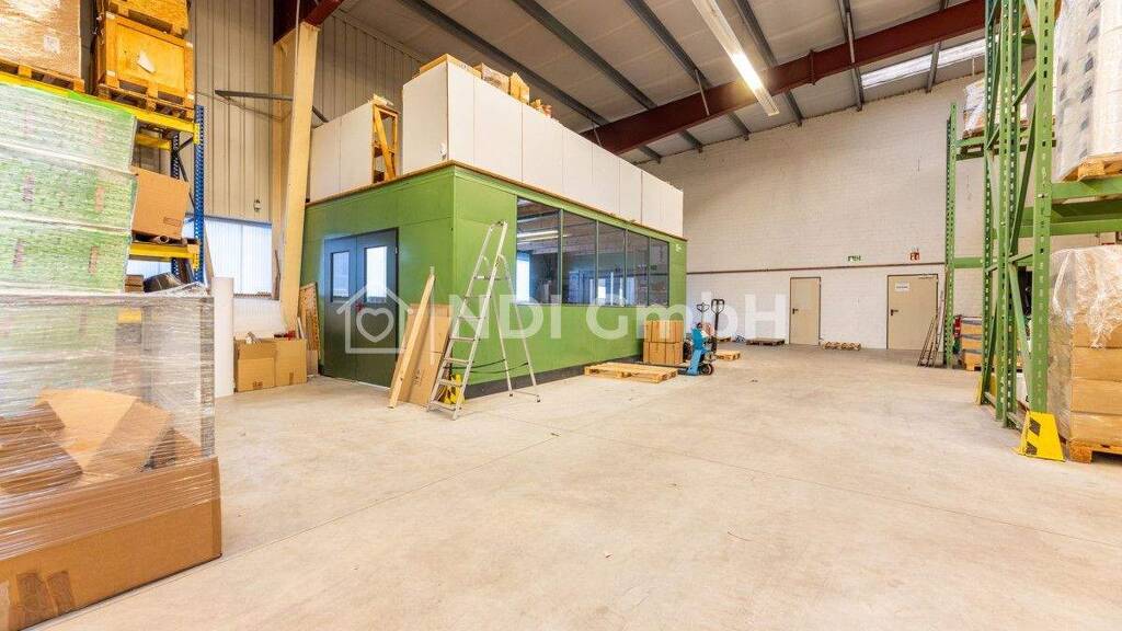 Zentrale Lage mit insgesamt ca. 270 qm Bürofläche im Erdgeschoss, davon 99 Quadratmeter Ausstellungsfläche im Obergeschoss. Zusätzlich bietet die Immobilie im Erdgeschoss beeindruckende 1.026 qm Lager/Fertigungsfläche sowie 60 qm Bürofläche, derzeit als Wohnfläche genutzt. Von der Lagerfläche sind derzeit ca. 550 m² untervermietet