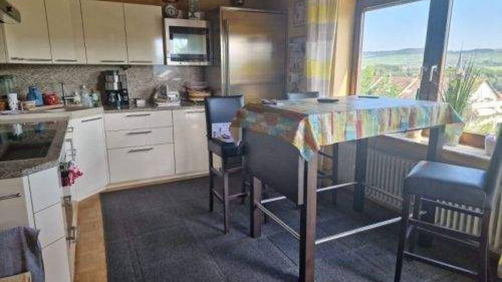 Kurzbeschreibung Erlabrunn/WÜ, 2-FamHs + ELW mit malerischem Ausblick, 3 Garagen, Bj. 1978, Grd. 722 m², Wfl. 310 m², Öl-ZH (2010), V 134,0 kWh/(m²a)E, KP 650.000 € Objekt Erdgeschoss, 120 m²: Eßzimmer (Fliesen, vormals Küche), Küche (Parkett), Gäste-WC (Fliesen), Speisekammer (Marmorboden), Flur (Marmorboden), Schlafzimmer (Fliesen),