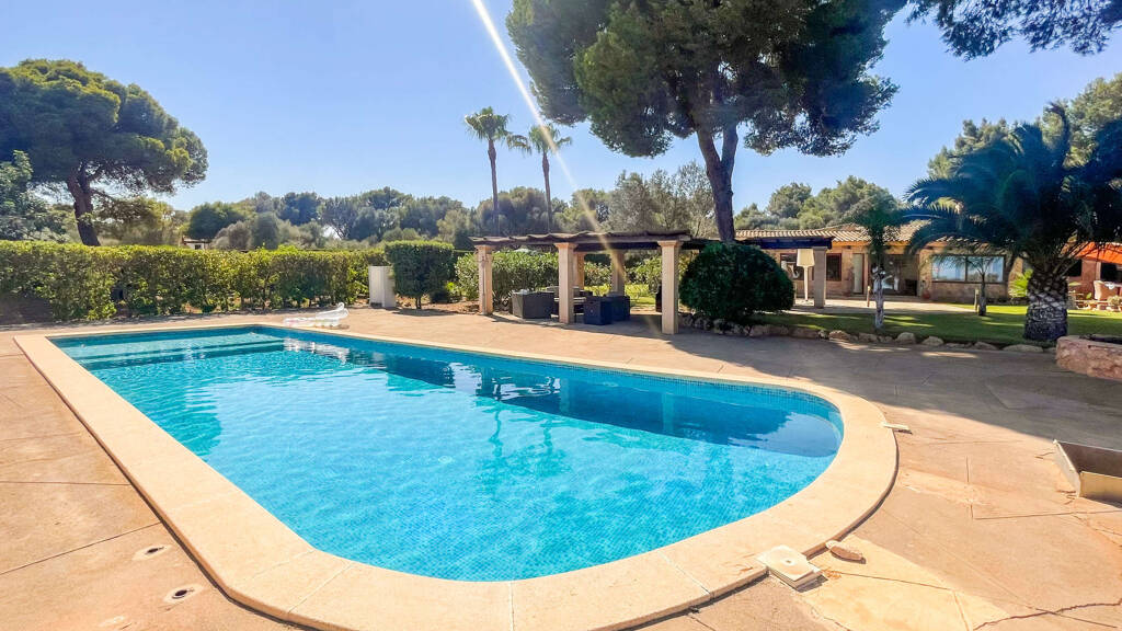 Das Anwesen besticht durch seine üppige Vegetation mit zahlreichen Palmen, Sträuchern und mediterranen Pflanzen, die zum Träumen einladen. Die Schönheit des Anwesens kann bei einem Spaziergang auf den liebevoll angelegten, gepflasterten Wegen bewundert werden. Die gepflegten Rasenflächen um die Finca herum bieten reichlich Platz für Entspannung und für Freizeitaktivitäten. Der beeindruckende Pool mit Chill-Out-Zone ist das Herzstück der Anlage und bietet eine erfrischende Oase an heißen Sommertagen.
