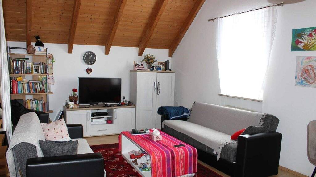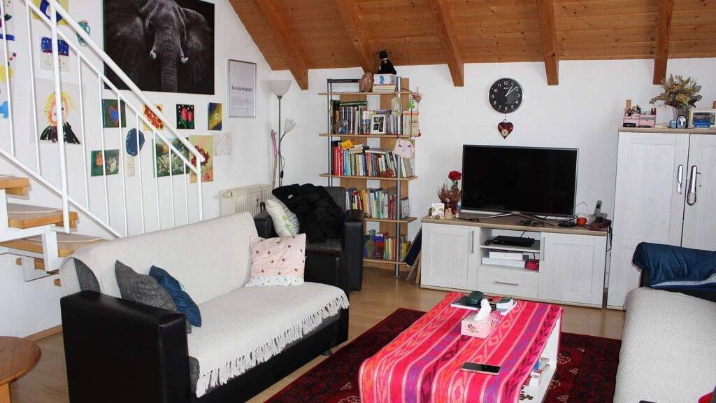 Die 3-Zimmer-Maisonette-Wohnung besticht durch den eindrucksvollen Sichtdachstuhl und die hellen lichtdurchfluteten Räume.