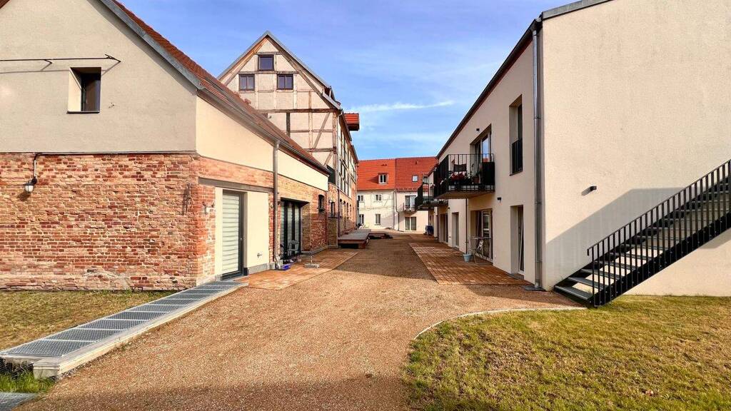 Diese neuwertige 3-Zimmer-Wohnung befindet sich auf Hochparterre-Niveau in einem kernsanierten Denkmalobjekt im Herzen der Altstadt von Nauen. Das Gebäude verbindet den historischen Charme eines Denkmalensembles mit zeitgemäßem Wohnkomfort und liegt geschützt in einem besonderen Innenhof, der für eine außergewöhnlich ruhige Wohnatmosphäre sorgt - trotz absolut zentraler Lage.