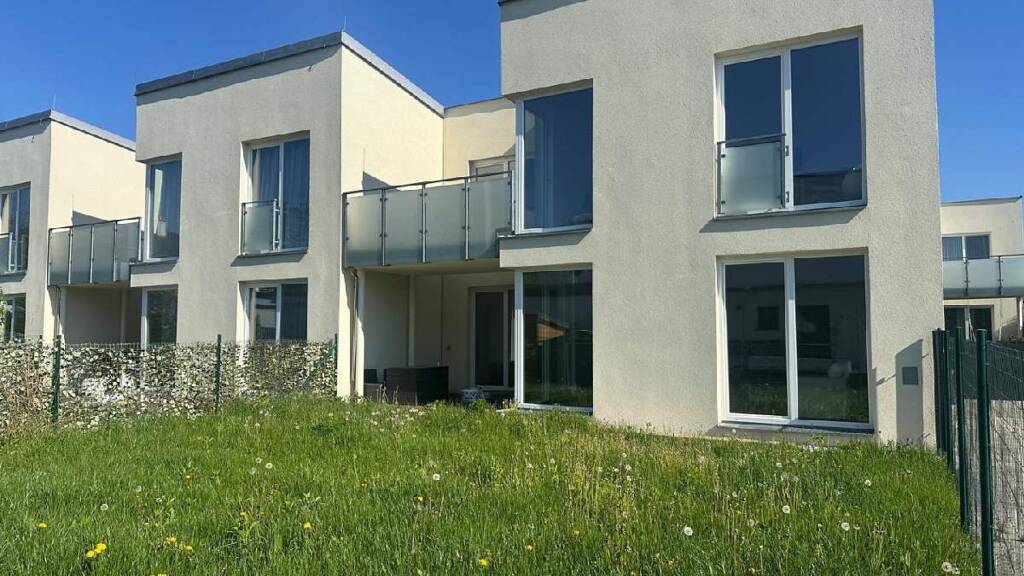 Im Norden und Süden der Liegenschaft befinden sich die Reihenhäuser zu je 4 Wohneinheiten. Mittig sind 2 Doppelhäuser zu je 4 Wohneinheiten angeordnet Die Terrassen sind zu den Gärten ausgerichtet Im Obergeschoss führen 2 Zimmer auf den Balkon Küche und Wohnzimmer führen zur Terrasse Laminatböden 1 KFZ-Abstellplatz In jedem Garten befindet sich eine Gartenhütte Gartenwasseranschluss Es gibt einen Gemeinschaftsplatz, der als Kleinkinderspielplatz gewidmet ist Ein angrenzender See mit Liegewiese für Ihre entspannenden Momente