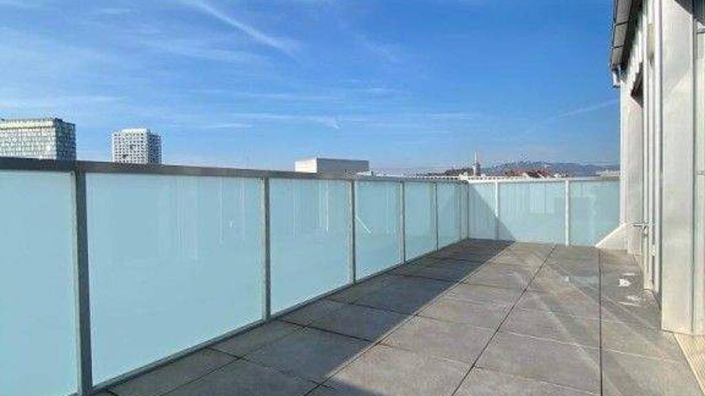 Beide Außenflächen sind nach Westen ausgerichtet und bieten einen traumhaften Ausblick über die Dächer von Linz!