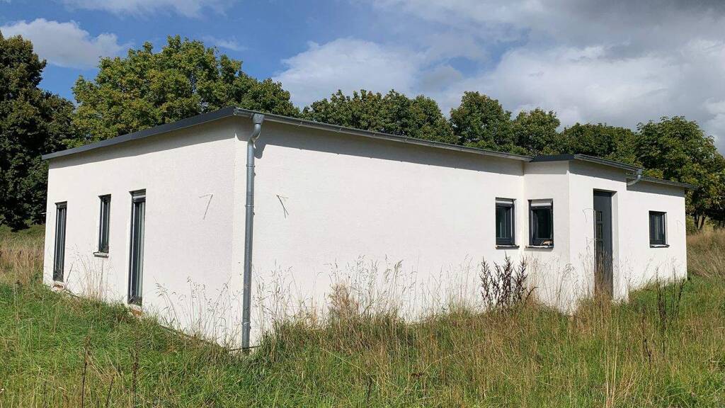 Dieses moderne Einfamilienhaus (Bungalow) besticht durch eine durchdachte Lebensgestaltung auf großzügiger Fläche. Die offene Küche verbindet sich harmonisch mit dem großzügigen Wohnzimmer und schafft so einen lichtdurchfluteten Wohnbereich. Von dort gelangen Sie auf die Terrasse, die zum Entspannen im Freien einlädt.