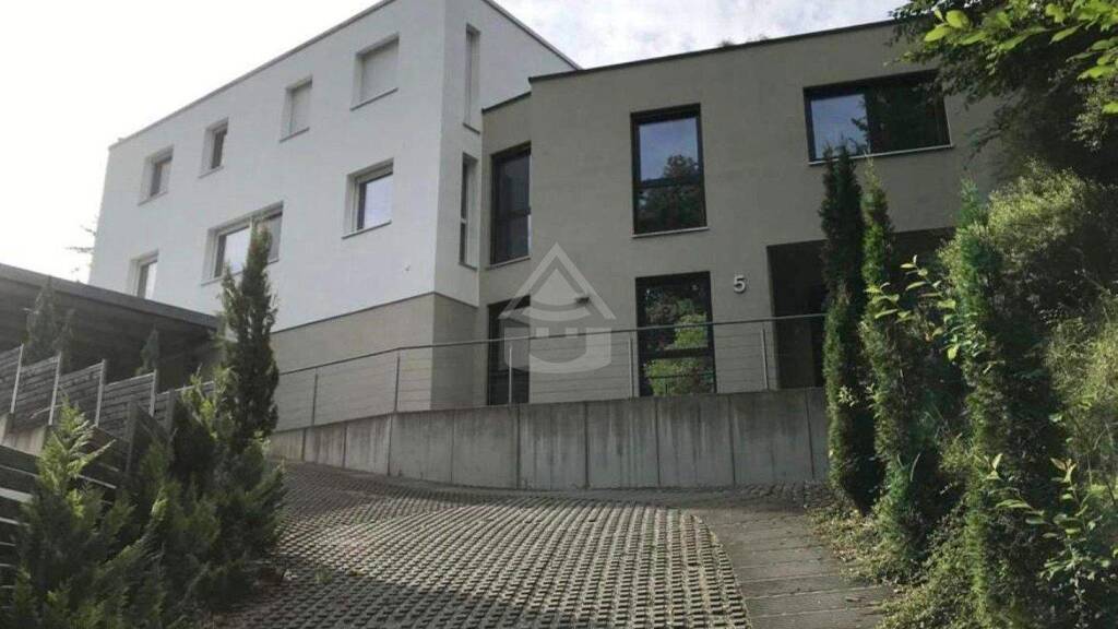 Das repräsentative Hanghaus wurde im Jahr 2014 von einem renommierten Architekten aus Landshut auf Basis eines Bestandsgebäudes neu errichtet und mit zeitgemäßer, hochwertiger Technik ausgestattet. Dazu zählen unter anderem eine moderne Wärmepumpe sowie eine Wasserenthärtungsanlage. Die Immobilie wird über eine großzügig angelegte Zufahrt mit komfortabler Wendemöglichkeit erschlossen; ein Carport bietet Platz für zwei Fahrzeuge.