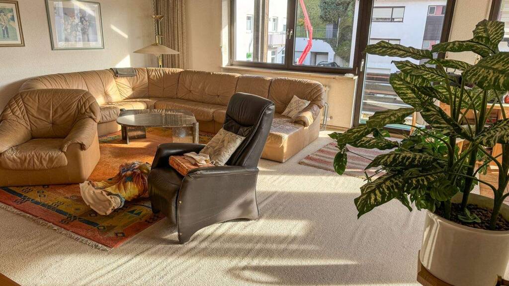 Diese 3-Zimmer-Wohnung mit einer Wohnfläche von rund 117 m² befindet sich im ersten Stock eines Wohnhauses aus dem Jahr 1980 und bietet eine großzügige Raumaufteilung mit viel Potenzial zur persönlichen Gestaltung. Unter der Wohnung liegt ein Geschäftsladen, darüber folgen zwei weitere Wohneinheiten.
