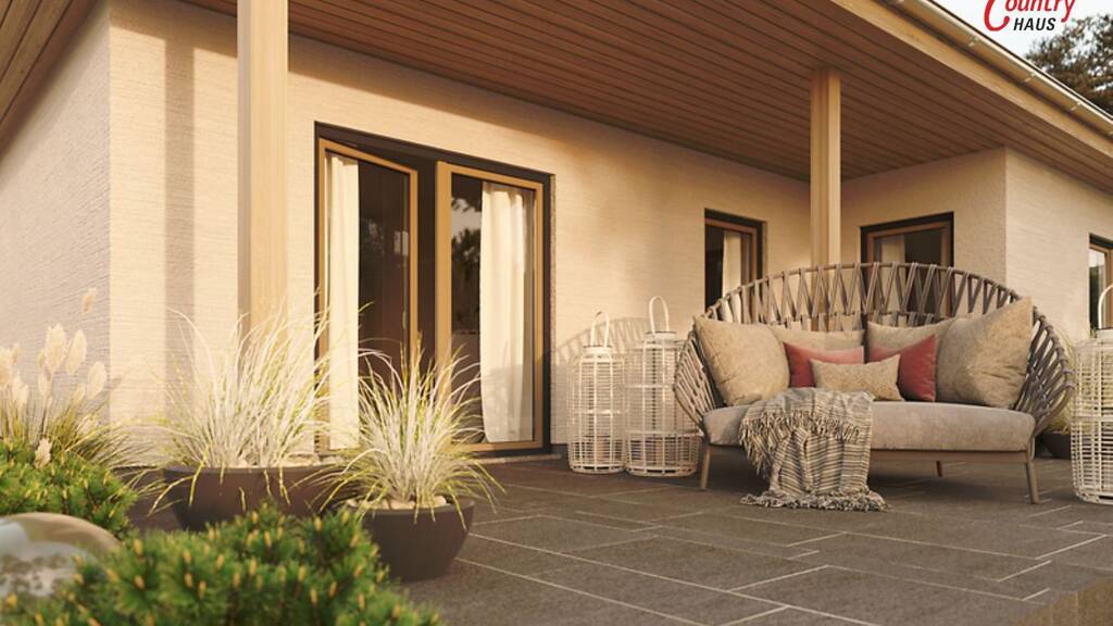 Unser Tipp: Wie bei allen Bungalows von Town & Country Haus können Sie sich mit dem Komfort Paket auch im Alter höchste Wohn- und Lebensqualität sichern. Das durchdachte Konzept beginnt schon an der Eingangstür - niedrige Schwellen minimieren Barrieren im ganzen Haus. Eine bodentiefe Dusche und ein höhenverstellbares Wand-WC bieten höchsten Komfort im Badezimmer. Vergrößerte Innentüren erleichtern den Durchgang.