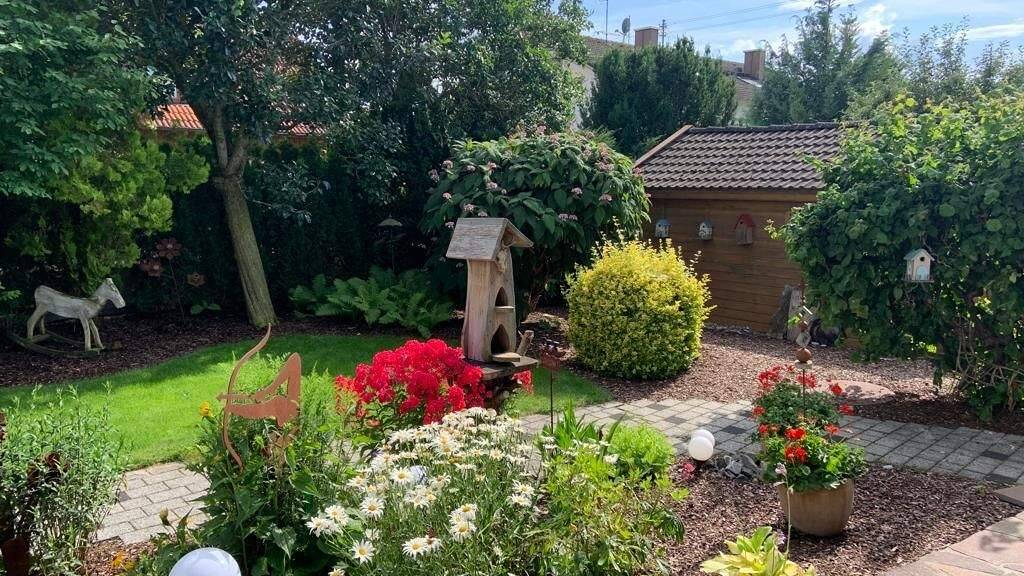 Zu dieser Immobilie gehört eine große Garage mit angrenzendem Abstellraum. Außerdem befinden sich auf dem Grundstück zwei Außen-Stellplätze, ein Geräteschuppen, ein Gartenhaus, zwei Hochbeete und eine Kräuterschnecke.