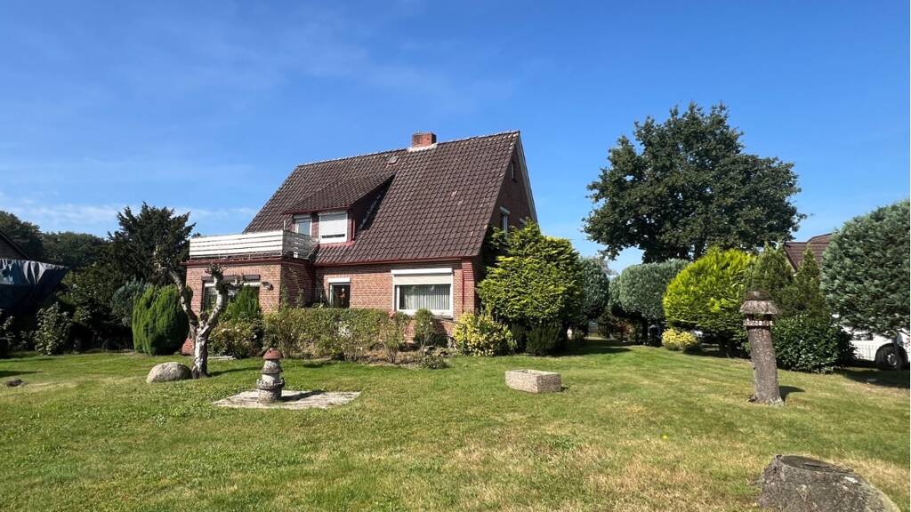 Das ca. 1.030 m² große Eckgrundstück ist zum Großteil eingezäunt und pflegeleicht angelegt. Neben einigen Bäumen sind kleine Hecken und Büsche entlang der Grenze gepflanzt. Neben der gepflasterten Zuwegung zum Haus, ist die überwiegende Fläche mit Rasen angelegt. Im hinteren Bereich des Grundstücks gibt es noch eine rund 40 m² große Stallung aus früherer Pferdehaltung - ideal als Lager- oder Handwerkerraum. Insgesamt wird dieses interessante Angebot noch mit einem direkt neben dem Haus angeschlossenen Carport abgerundet.