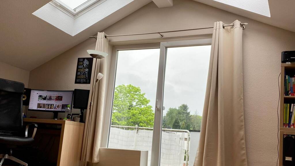 Der große Balkon bietet Ihnen einen schönen Blick über die Dächer von Gerlingsen mit Weitsicht in die Wälder.