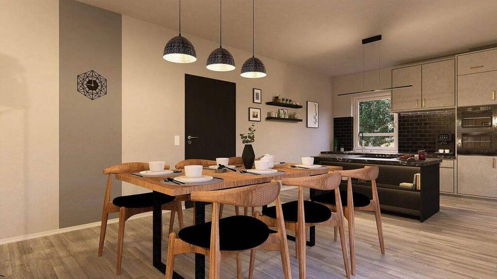 Ein echter Blickfang des Design 12 ist die Fassade, die durch ihre farbige Gestaltung zum echten Hingucker wird. Doch auch die Räume unter dem Satteldach haben auf mehr als 160 m² Wohnfläche vieles zu bieten: Von der Diele haben Sie Zugang in die Küche mit angeschlossenem Wohn-Ess-Bereich. Im Erdgeschoss führen fünf Türen nach draußen und sorgen zugleich für viel Licht. Ebenfalls auf dieser Etage: WC, Hauswirtschaftsraum sowie ein weiterer Raum, der als Gästezimmer oder Büro genutzt werden kann.