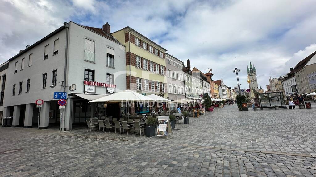 Das Wohn- & Geschäftshaus befindet sich in bester 1A-Lage am Beginn der Fußgängerzone am Straubinger Stadtplatz.