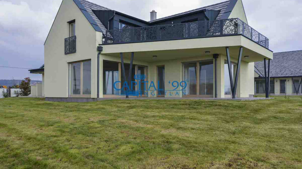 Objektbeschreibung Neu gebautes Einfamilienhaus in Cserszegtomaj, in sehr ruhiger Lage ist zu verkaufen. Von der Terrasse im Obergrschoß eröffnet sich ein schöner Panoramablick auf Keszthely, und auf den Plattensee. Das 1240 qm Grundstück ist schön praktisch, teils angelegt. Das Haus wird mit Luft-Wärmepumpe erwärmt, über Daikin-System, mit H-Tariffe. Die Boden sind mit Vinyl und Keramikplatten verlegt. Nach Bedarf kann das Haus sofort übernommen werden. Es ist für ständigen Wohnsitz ideal. Raumaufteilung Erdgeschoß: