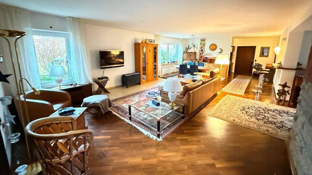 Die großzügige Wohnfläche von ca. 210m² in Verbindung mit einer modernen Architektur bieten Ihnen ein wunderbares Zuhause für Ihre Familie. Wohl proportionierte Wohnräume und eine attraktive Ausstattung vermitteln eine wunderbare Wohnqualität, die über die Jahre erschaffen wurde und auch aus energetischer Sicht überzeugt. Schon bei Eintritt in dieses neue Zuhause fühlen Sie sich willkommen. Vom Eingangsbereich gelangen Sie in den großzügigen Wohn-Essbereich mit seinen 53m², der am Ende in die gemütliche Kaminecke mit dem hohen Luftraum und der Galerie führt, die wunderbar als kleines Büro genutzt werden kann. Hier lässt es sich in ansprechendem Ambiente bestens arbeiten. Die dem Wohnzimmer zugewandte, hochwertige Küche ist offengestaltet und bietet wie das Wohn- als auch das Kaminzimmer Zugang auf die Terrasse und in den pflegeleichten, herrlichen Garten. Hier können Ihre Kinder sich wunderbar bewegen und herumtollen. Der abgetrennte Ruhebereich beherbergt das Elternschlafzimmer mit einem hellen sowie großzügigen Ensuite-Duschbad. Vervollständigt wird das Erdgeschoss durch ein selbstverständliches Gäste-WC Im Obergeschoss befinden sich zwei weitere Zimmer, ein Durchgangszimmer, dass in der Vergangenheit als Küche mit Essbereich verwendet wurde, ein beheizter Wintergarten sowie ein Tageslicht-Duschbad.
