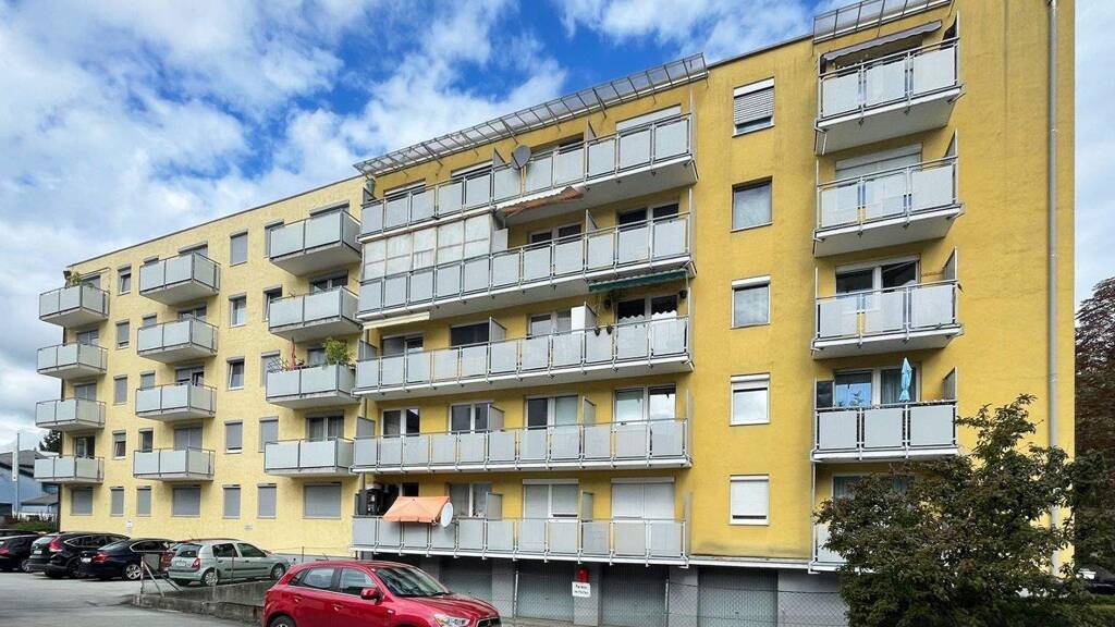 Die Wohnung selbst verfügt über einen praktischen Grundriss sowie einen Balkon, der zusätzlichen Wohnkomfort bietet. Ein Kellerabteil sorgt für zusätzlichen Stauraum, und allgemeine Stellplätze für Autos stehen den Bewohnern zur Verfügung. Das Wohnhaus präsentiert sich in gutem Zustand, was den Werterhalt langfristig unterstützt.