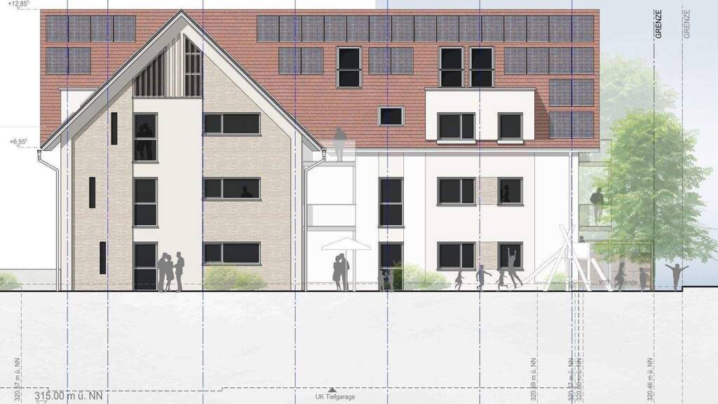 Auf einem großzügigen Grundstück von 1.431 m² entsteht ein ansprechendes Mehrfamilienhaus mit 14 hochwertigen Wohneinheiten und einer Gesamtwohnfläche von ca. 1.177,27 m².