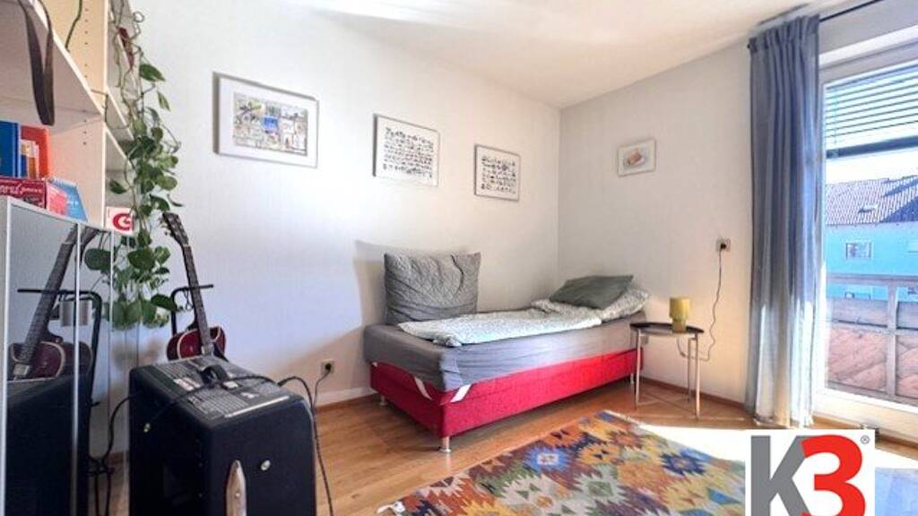 Zimmer ca. 10 m² - Dieses helle Zimmer verfügt ebenso wie der Flur über einen direkten Zugang auf die ca. 5 m² große Loggia. Von hier aus bietet sich ein herrlicher Grün- und Bergblick sowie ein schöner Blick auf die Kirche von Wals.