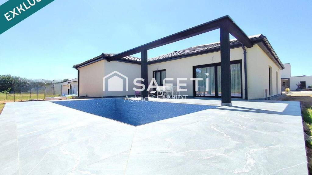 Einfamilienhaus - ebenerdig - neuwertig Ich biete dieses große, sehr neue, einstöckige Haus exklusiv an. Das 2023/24 erbaute Haus ist nahezu neuwertig. Es bietet einen Eingangsbereich, ein Wohnzimmer mit Zugang zur großen Küche (Natursteinarbeitsplatten und eine Speisekammer), drei Schlafzimmer, darunter ein Hauptschlafzimmer (mit Duschbad und Ankleideraum), ein großes Badezimmer mit ebenerdiger Dusche und ein Gäste-WC. Das Esszimmer ist durch große Fenster lichtdurchflutet, während die Küche auf eine Terrasse mit Blick auf den Garten und einen sehr großen Pool führt. Eine Doppelgarage, ein Waschraum und ein Abstellraum (alles auf einer Ebene und miteinander verbunden) komplettieren das Anwesen und machen es somit für Menschen mit eingeschränkter Mobilität geeignet. Das Haus verfügt über hochwertige dreifach verglaste PVC-Fenster, elektrische Rollläden, eine Wärmepumpenheizung und eine einflutige mechanische Lüftungsanlage (CMV). Das Haus ist voll funktionsfähig, sofort bewohnbar und von hervorragender Handwerkskunst. Verkaufspreis inkl. Maklercourtage: 449.900 € Verkaufspreis exkl. Maklercourtage: 434.900 € Vom Käufer zu zahlende Gebühren: 15.000 € inkl. MwSt.