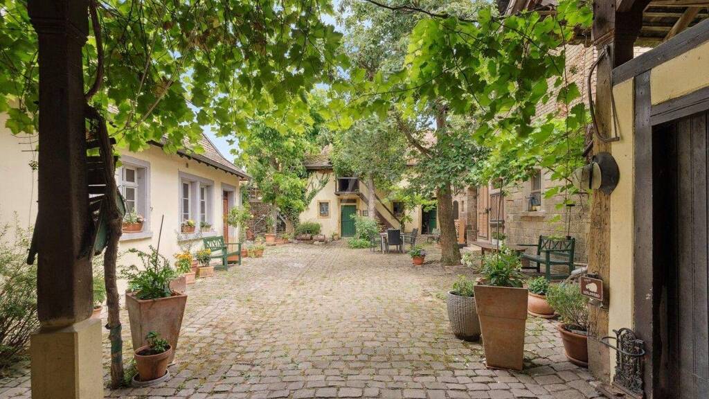 Das rund 690 m² große Grundstück bietet zahlreiche Besonderheiten, die man anderswo vergeblich sucht: historisches Kopfsteinpflaster, ein ca. 40 m² großes Kellergewölbe, das heute als stimmungsvoller Festkeller dient, sowie die darüberliegende ca. 35 m² große Dachterrasse. Der geschlossene, uneinsehbare Innenhof schafft Privatsphäre und beherbergt eine ca. 35 m² große Terrasse/Freisitzfläche - perfekt für entspannte Stunden im Freien.