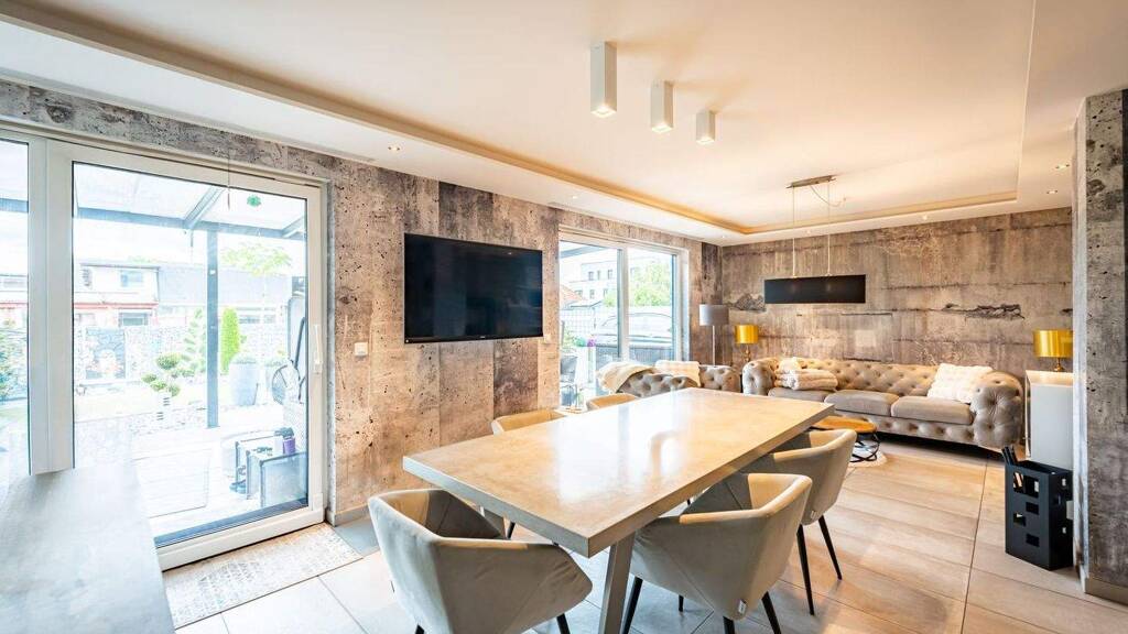 Bereits beim Betreten des Hauses überzeugt die durchdachte Grundrissgestaltung. Eine einladende Diele erschließt sämtliche Räume im Erdgeschoss. Hier befinden sich ein praktischer Hauswirtschaftsraum mit Waschmaschinenanschluss, ein modernes Gäste-Bad mit ebenerdiger Dusche sowie ein flexibel nutzbares Zimmer, das sich ideal als Homeoffice, Gästezimmer oder Hobbyraum eignet. Das Herzstück dieses Einfamilienhauses in Magdeburg bildet der großzügige Wohn- und Essbereich mit offener Küche und über 50 m² Wohnfläche. Große Fensterflächen sorgen für helle, lichtdurchflutete Räume und schaffen eine freundliche, offene Wohnatmosphäre. Der direkte Zugang zur rund 33 m² großen, überdachten Terrasse erweitert den Wohnraum ins Freie und bietet beste Voraussetzungen für entspannte Sommerabende, gesellige Treffen oder Zeit mit der Familie im eigenen Garten.