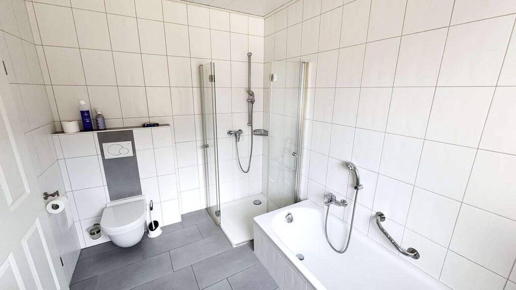 - Großzügiger Flur / Eingangsbereich - Küche mit moderner Einbauküche - Wohnzimmer mit Zugang zur Terrasse - Schlafzimmer - Badezimmer mit Badewanne und Dusche - Abstellraum, alternativ nutzbar als Gästezimmer oder Büro - Hauswirtschaftsraum