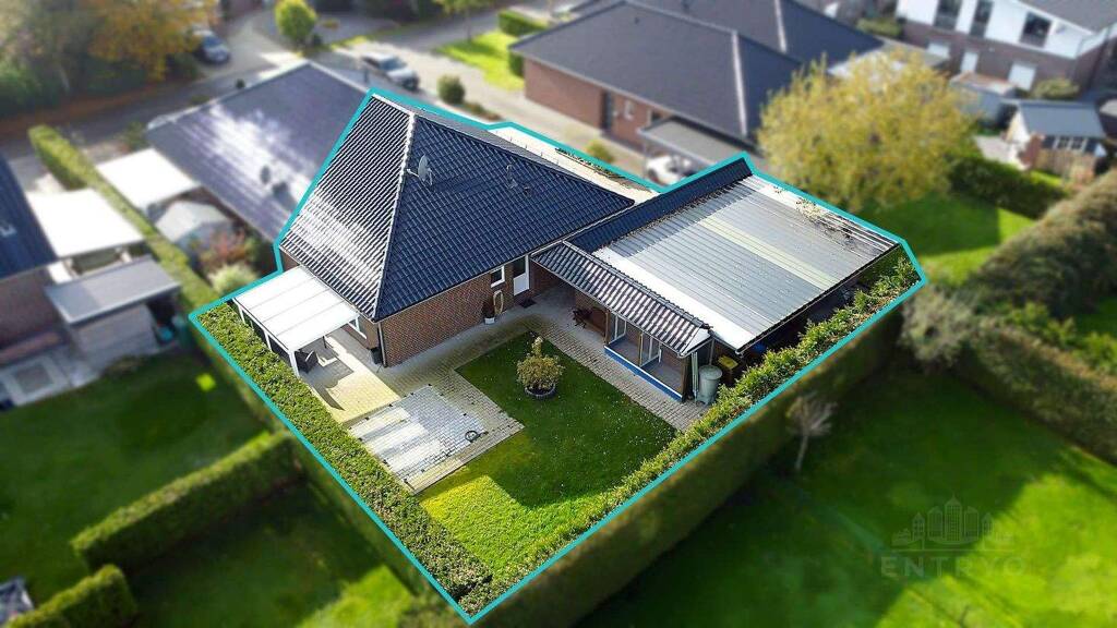 Ebenerdige Bungalowhälfte mit großer Doppelgarage und integrierter Werkstatt