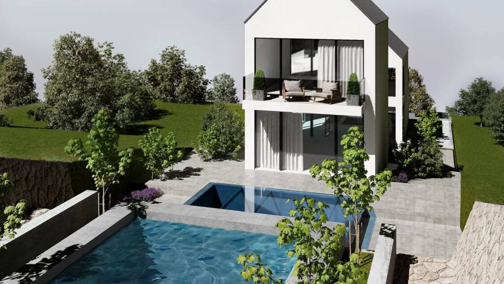 Information: Die Breite des Grundstückes beträgt ca. 11 Meter. Es liegt ein Plan mit behördlicher Bewilligung für den Bau eines Einfamilienhauses mit einer Gesamtnutzfläche von ca. 495 m² vor.
