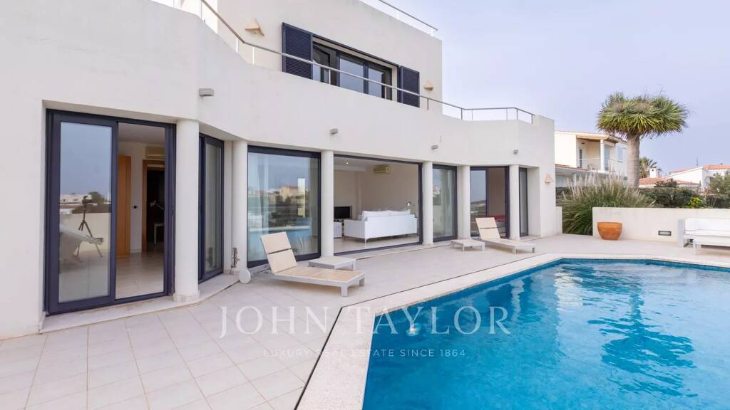 Diese spektakuläre freistehende Villa befindet sich in der prestigeträchtigen Urbanisation Cala Llonga, einer der exklusivsten Gegenden Menorcas. Sie bietet Privatsphäre, Helligkeit und einen beeindruckenden Blick auf das Meer von all ihren Terrassen aus, mit Blick auf den Eingang zur Flussmündung und, vom oberen Stockwerk aus, auf die Stadt Mahón.