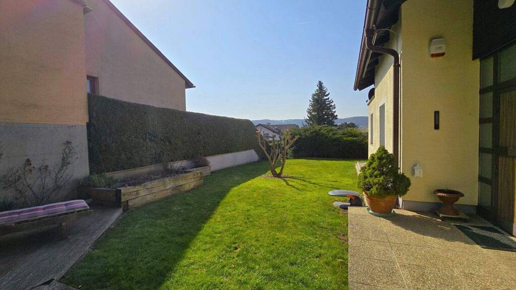 * gemütlicher Essebereich mit Ausgang auf die herrliche südseitige Terrasse und mit versetztem Wohnzimmer * große separate Küche * Wirtschaftsraum mit Fenster und Blick in den Garten der auch als Arbeitszimmer genutzt werden kann (eigener Eingang) * 2 zentral begehbare Schlaf/Arbeits/Kinder-Zimmer * Badezimmer mit Fenster und großer Dusche und WC * separates WC * Schwedenofen * Auf und Abgang