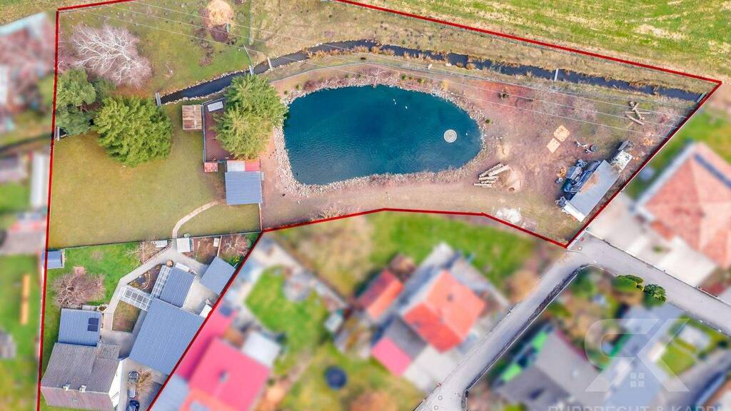 Das Anwesen überzeugt jedoch nicht nur durch das Haus selbst, sondern vor allem durch sein außergewöhnliches Grundstück. Ein besonderes Highlight ist der große Teich mit einer Wasserfläche von etwa 500 Quadratmetern, der auch künftig bestehen bleibt und auf unbefristete Zeit genehmigt ist. Im Jahr 2016 wurde dieser neu angeböscht und mit Granitsteinen eingefasst, wodurch er sich heute als attraktiver Blickfang mit ganz besonderem Flair präsentiert. Das weitläufige Grundstück schafft eine einzigartige Atmosphäre und macht die Immobilie zu einem idealen Ort für Menschen, die Natur, Freiraum und Tierhaltung miteinander verbinden möchten.